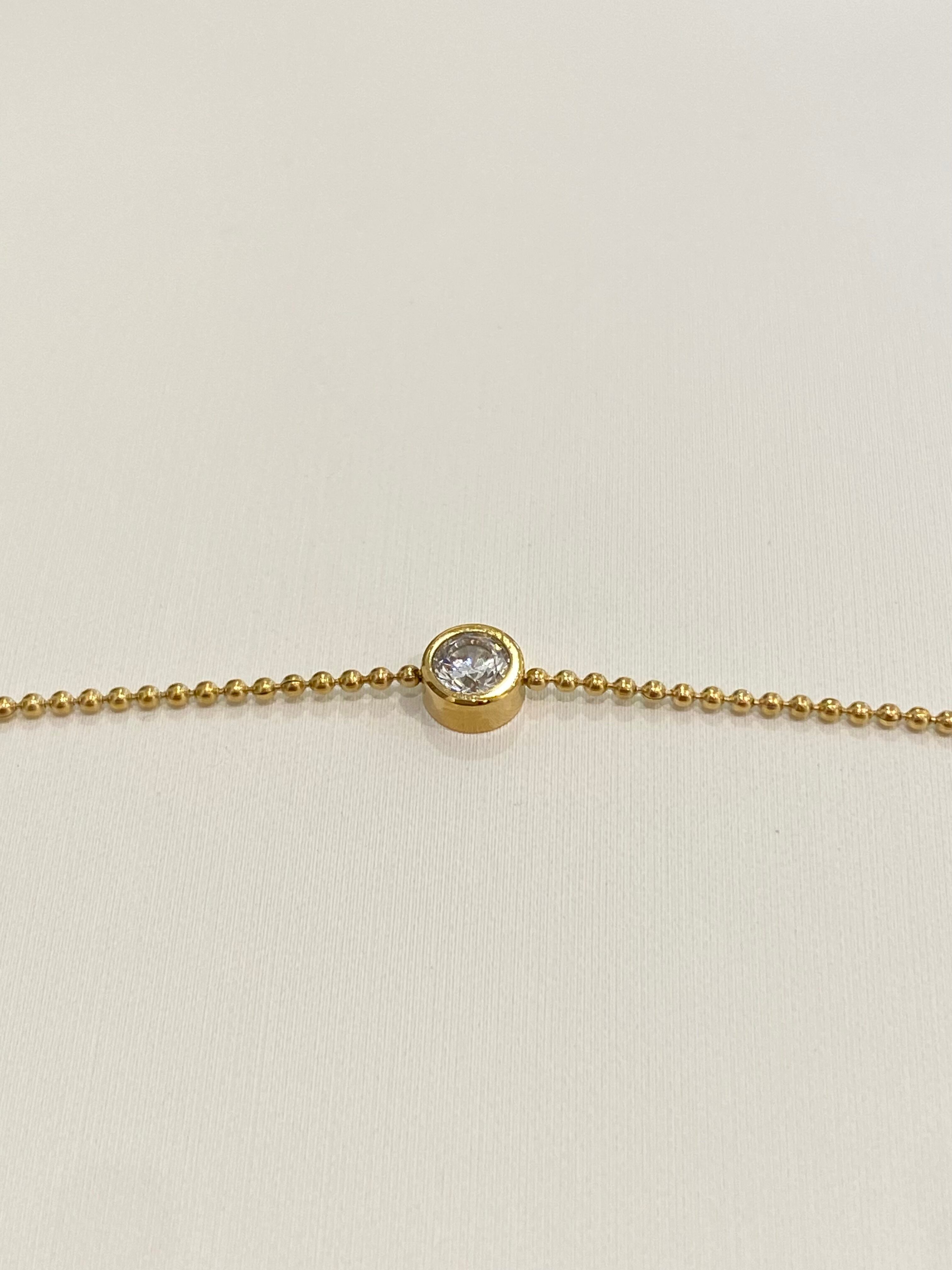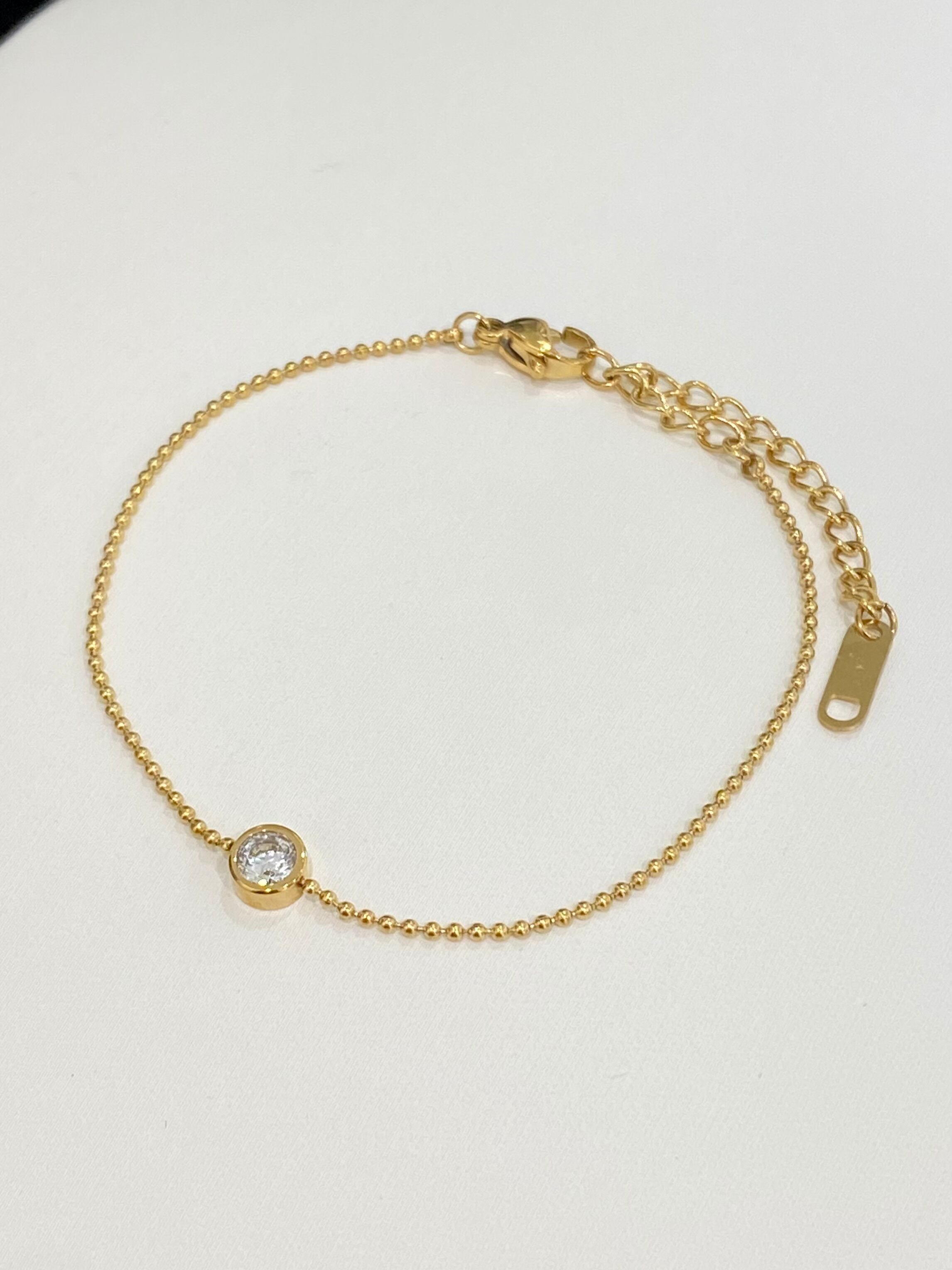 シンプルでありながら華やかな印象を与えるcz charm braceletです。煌めくCZストーンが手元で輝き、エレガントなアクセントを加えます。カジュアルな日常使いから、特別なシーンまで幅広く活躍し、どんなコーディネートにもぴったりマッチします。プレゼントにも