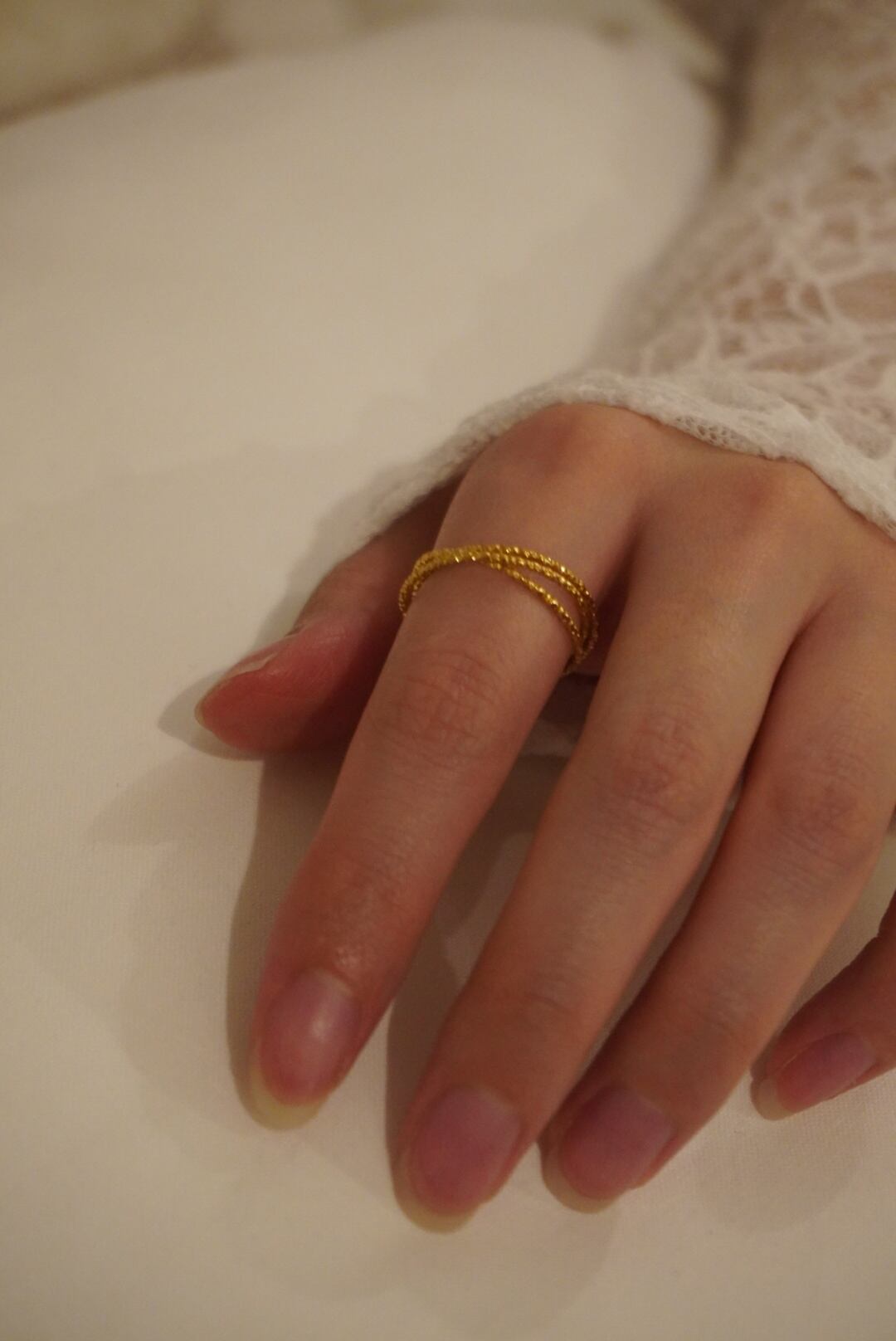 美しく重なり合い、指元に華やかさをプラスします。 手元に程よい存在感を与え、カジュアルなスタイルにも、フォーマルなシーンにもお使い頂けます