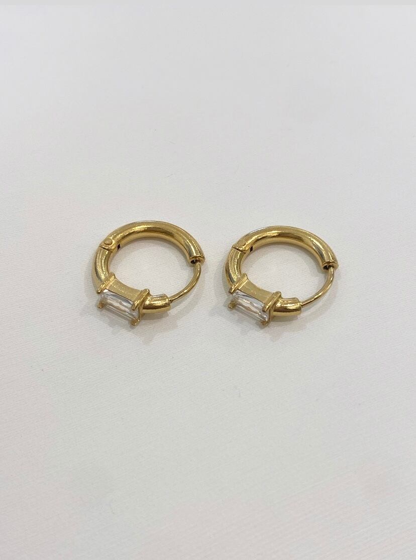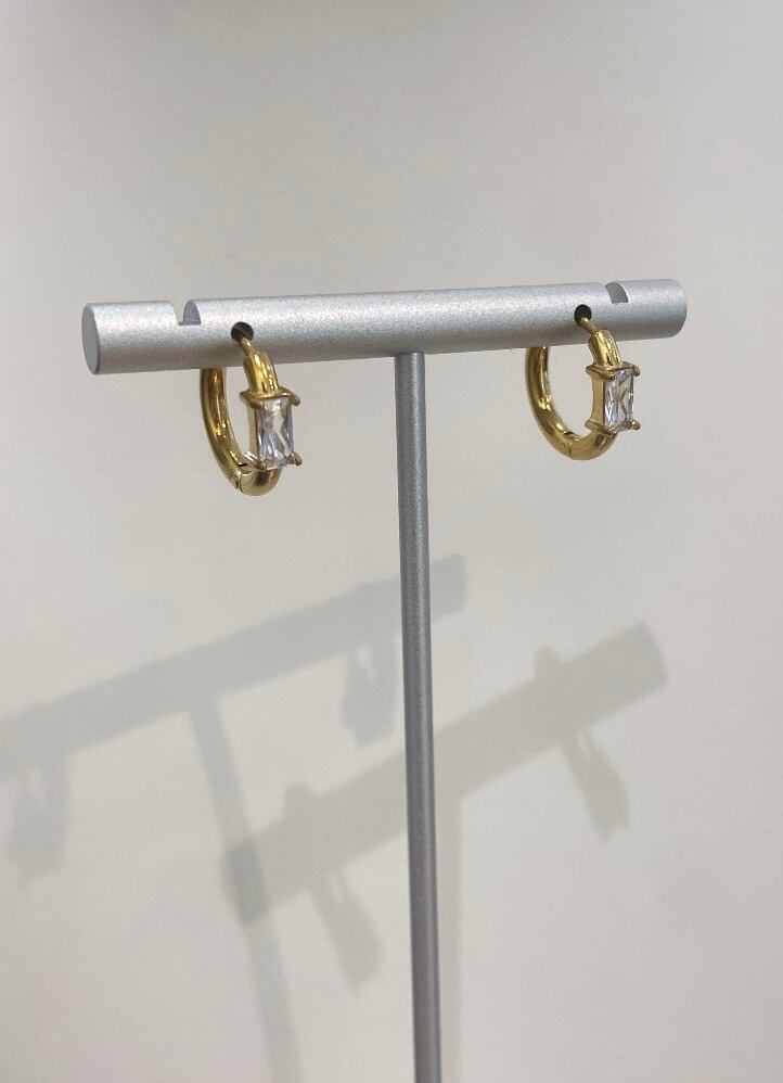 シンプルで洗練されたデザインが特徴のcz stainless hoop pierceは、耳元に上品な輝きを与えるアイテムです。キュービックジルコニアの輝きが、コーディネートにさりげない華やかさをプラスします。