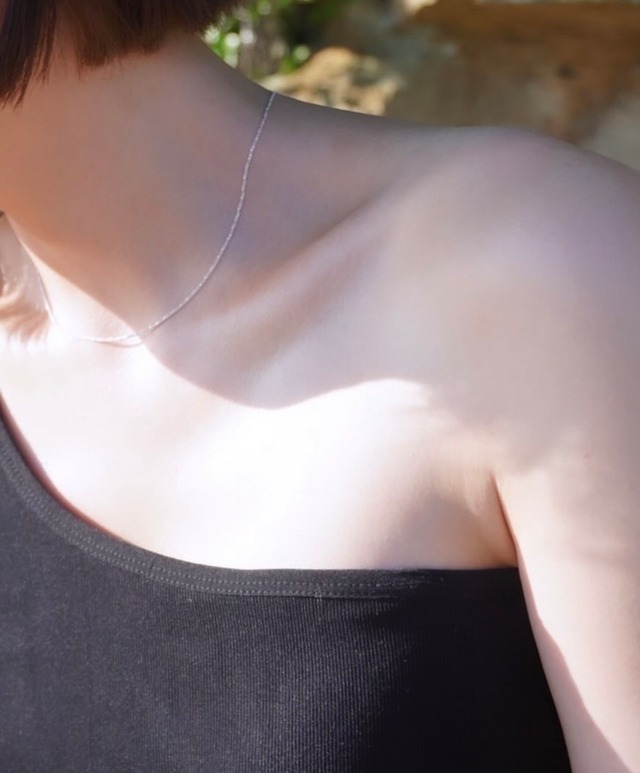 洗練されたデザインが魅力のネックレスは、光にあたるとキラキラ輝く美しいデザインです。シンプルながらも存在感があり、デイリースタイルから特別なシーンまで幅広く活躍するアイテムです