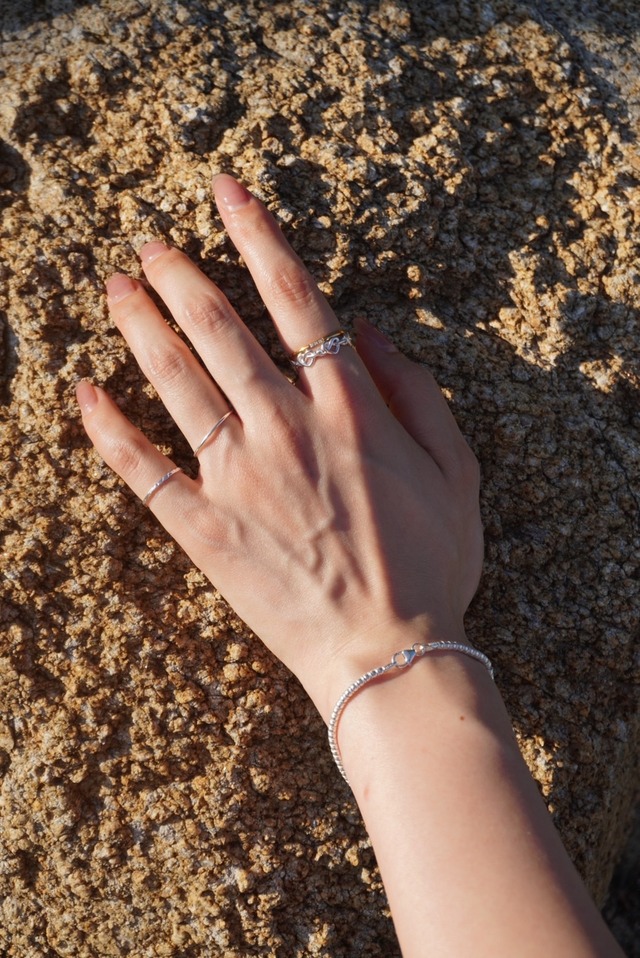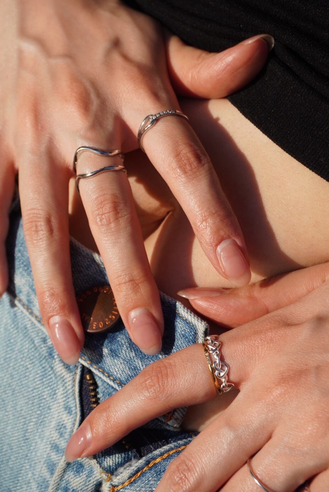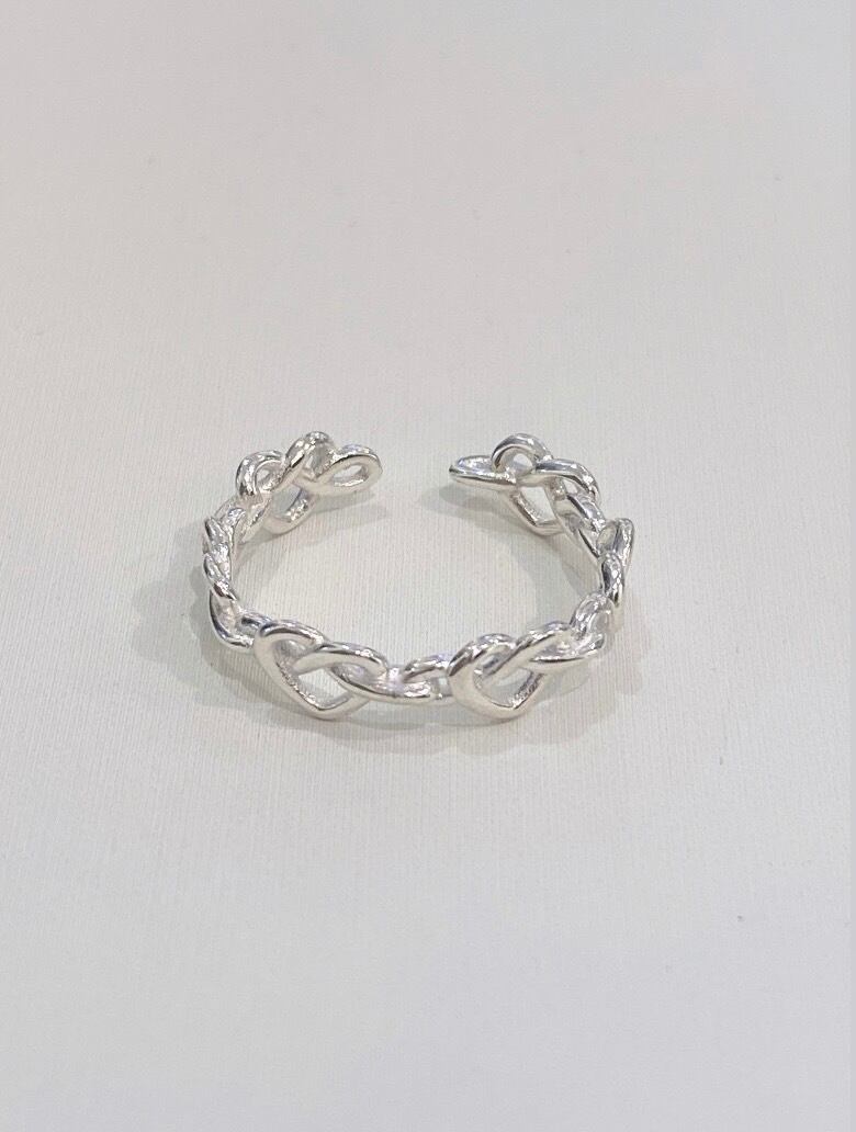 ハートのラインが連なったリングは、手元に程よいアクセントを与えてくれます。形が合う方はイヤーカフとしてもお使い頂ける2way仕様です。細いリングと一緒に手元をコーディネートするのもおすすめです。
