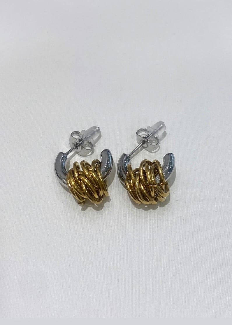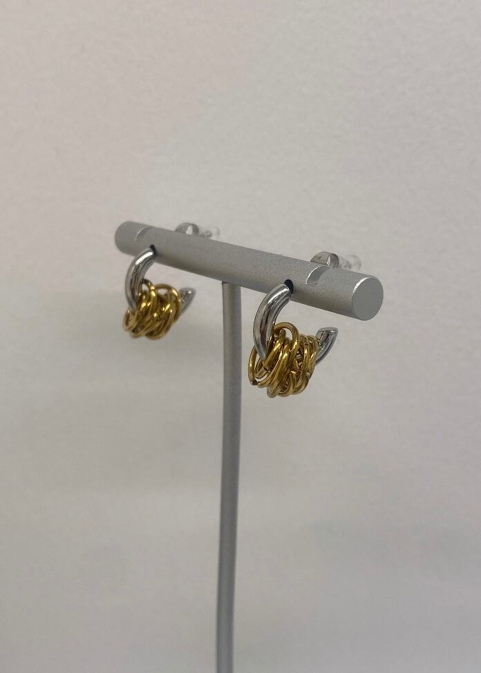 バイカラーとコイルのボリューム感が可愛いピアスです。程よく存在感がある為、シンプルなスタイリングの