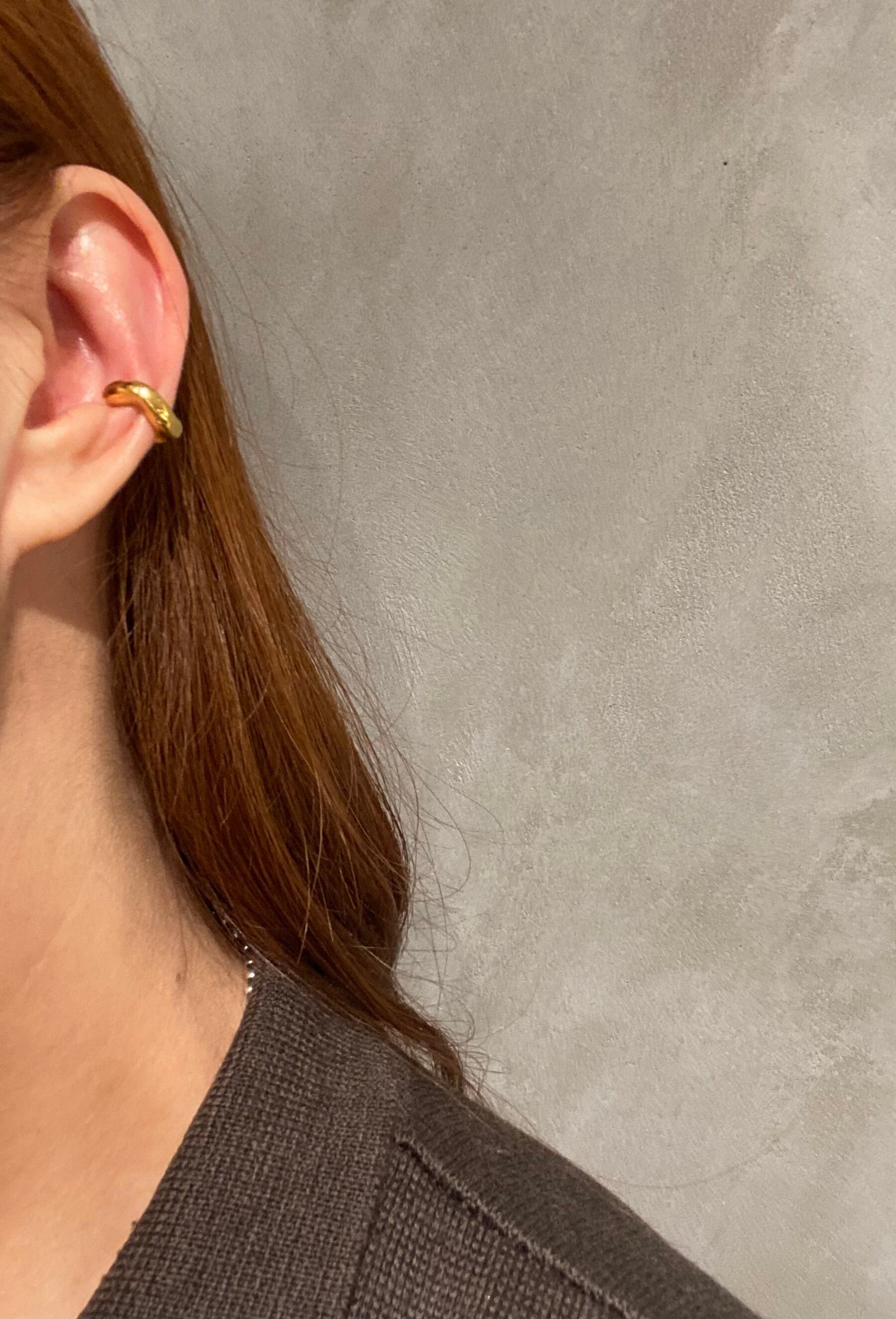 ぷくっとしたボリューム感と少しウェーブがかったデザインが可愛いイヤーカフです。一緒にピアスやイヤリングとコーディネートをしていただいても素敵です。サイズの調整が出来ない為、耳の縁の骨が薄い方におすすめです。
