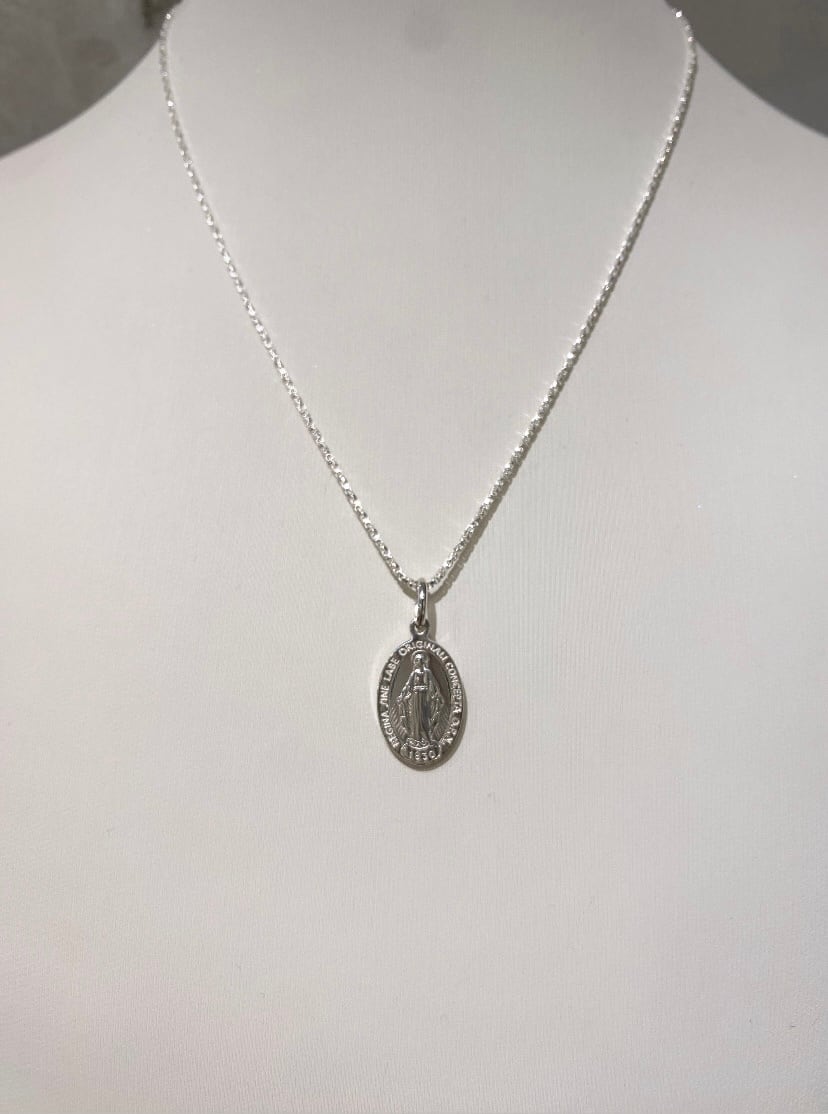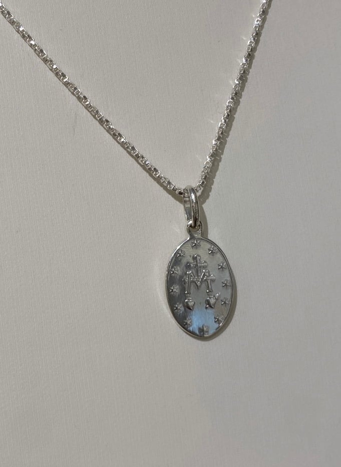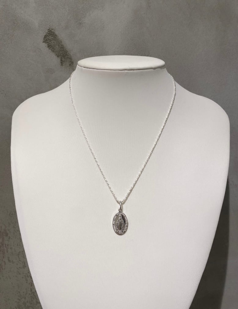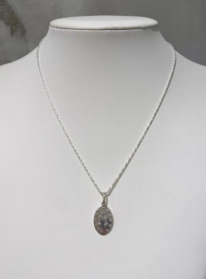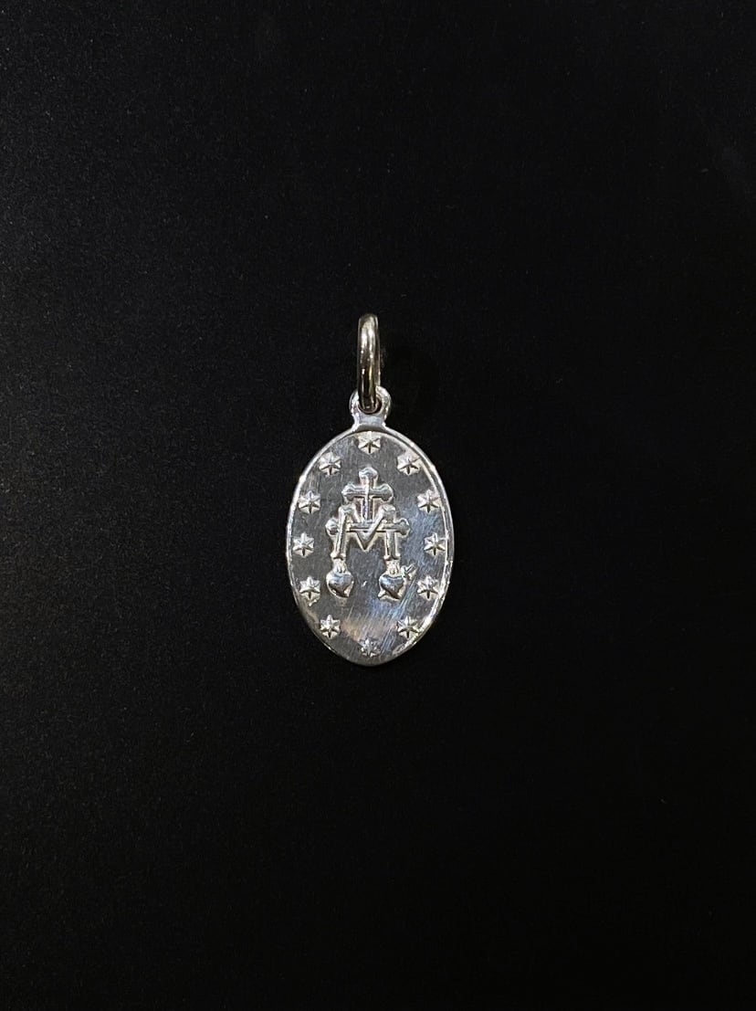 マリア様が描かれたチャームです。裏面にはMのアルファベットが描かれています。シンプルで飽きのこないデザインは、いつものネックレスに1つ通すだけでいつもと違った雰囲気をお楽しみ頂けます。