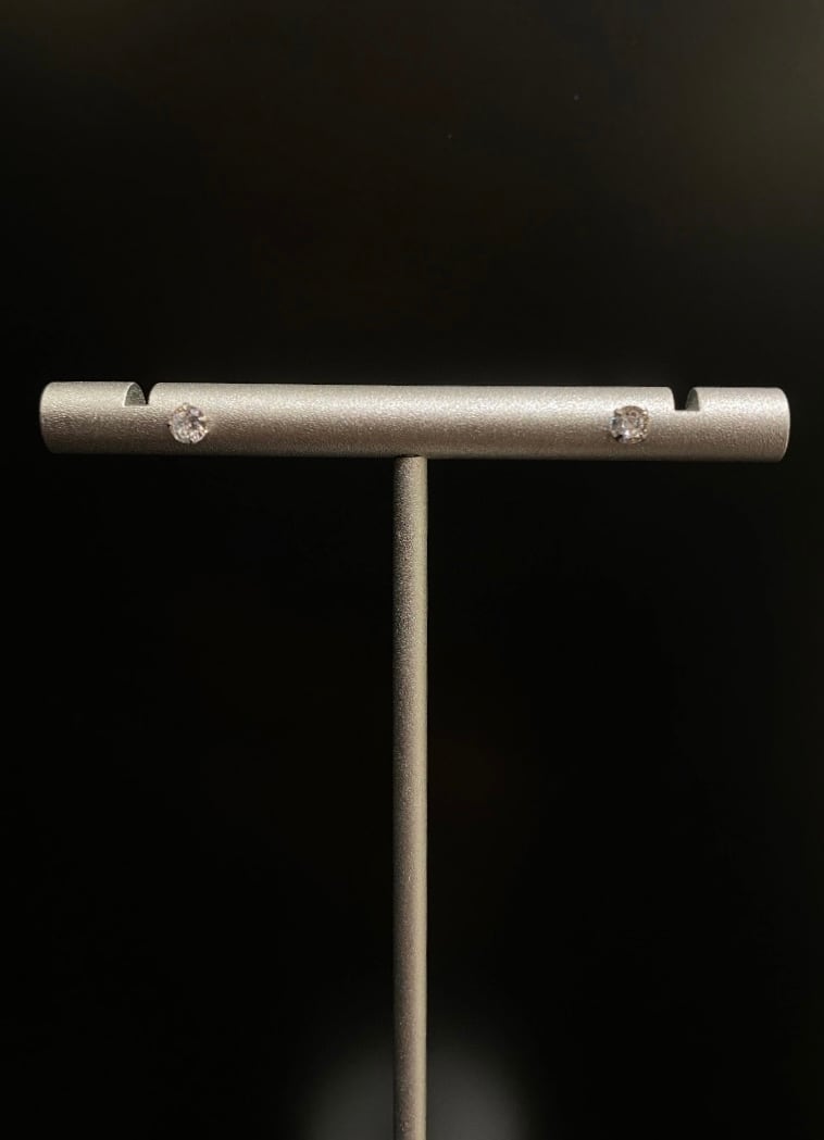 小さなキュービックジルコニアがついたシンプルで飽きのこないデザイン。シーン問わずご着用頂ける為、1つあると間違いないアイテムです。同じデザインでジルコニアのサイズが違うものもご用意がございます。