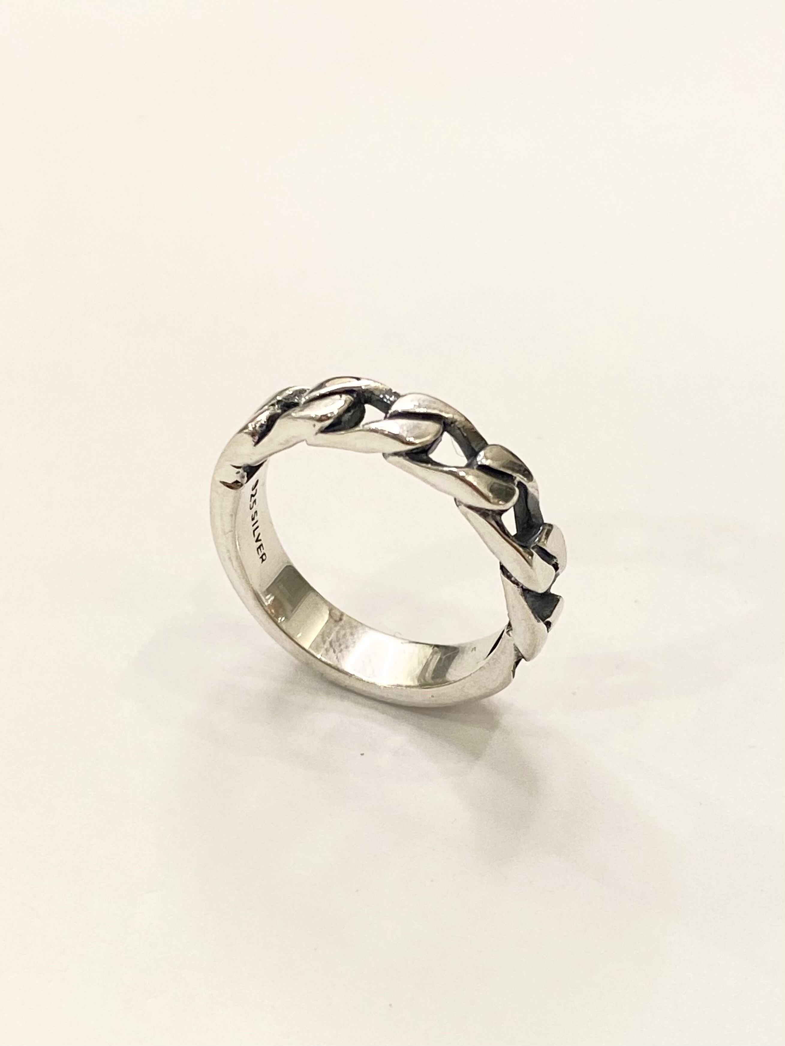 ユニセックスなデザインのリング。付けるだけで手元のオシャレが決まります。