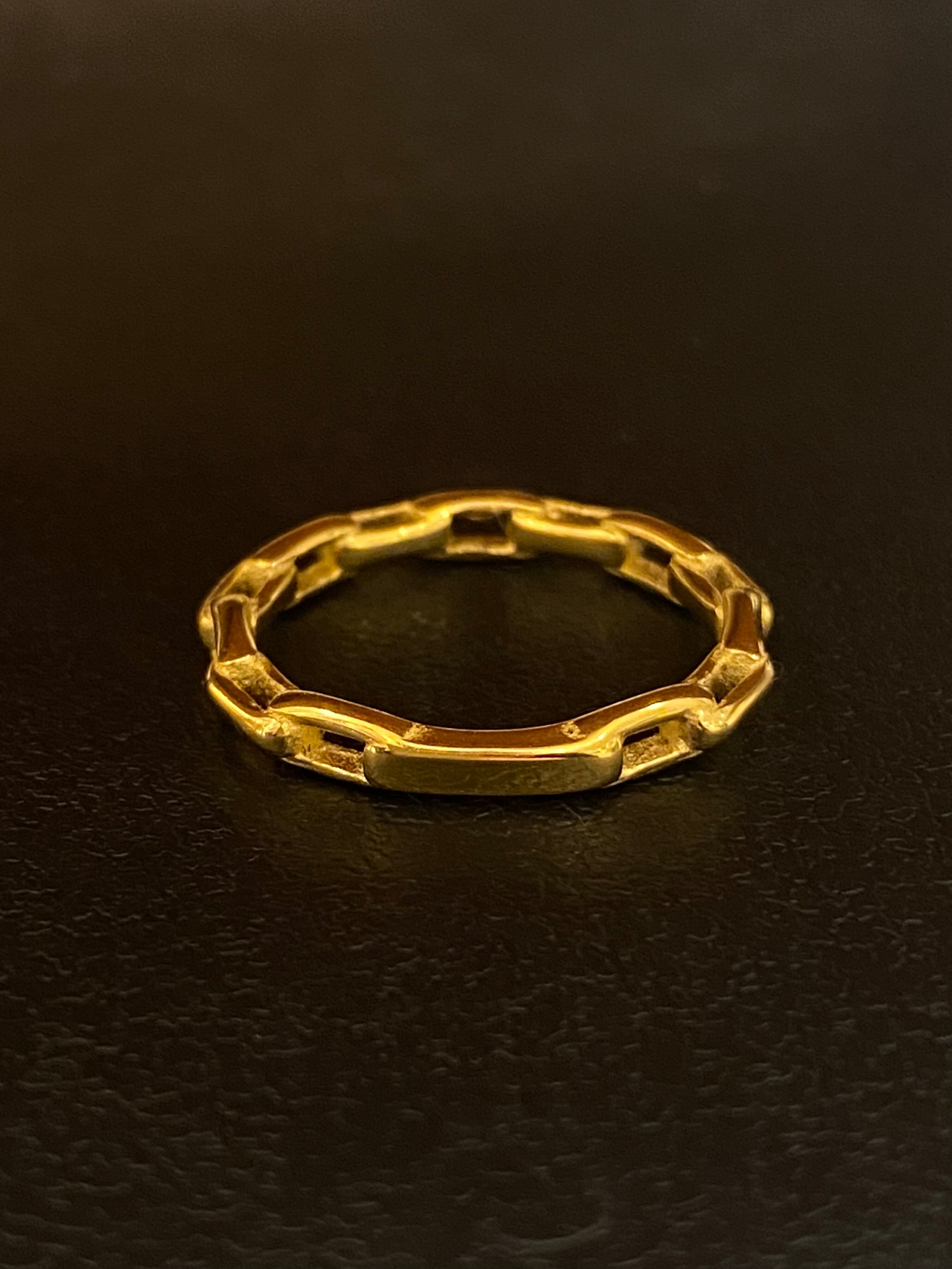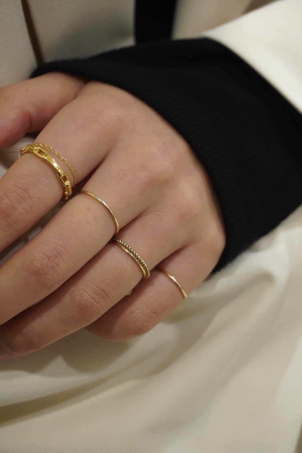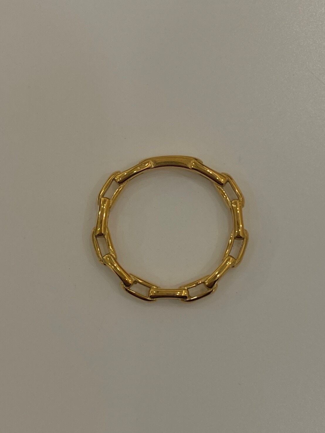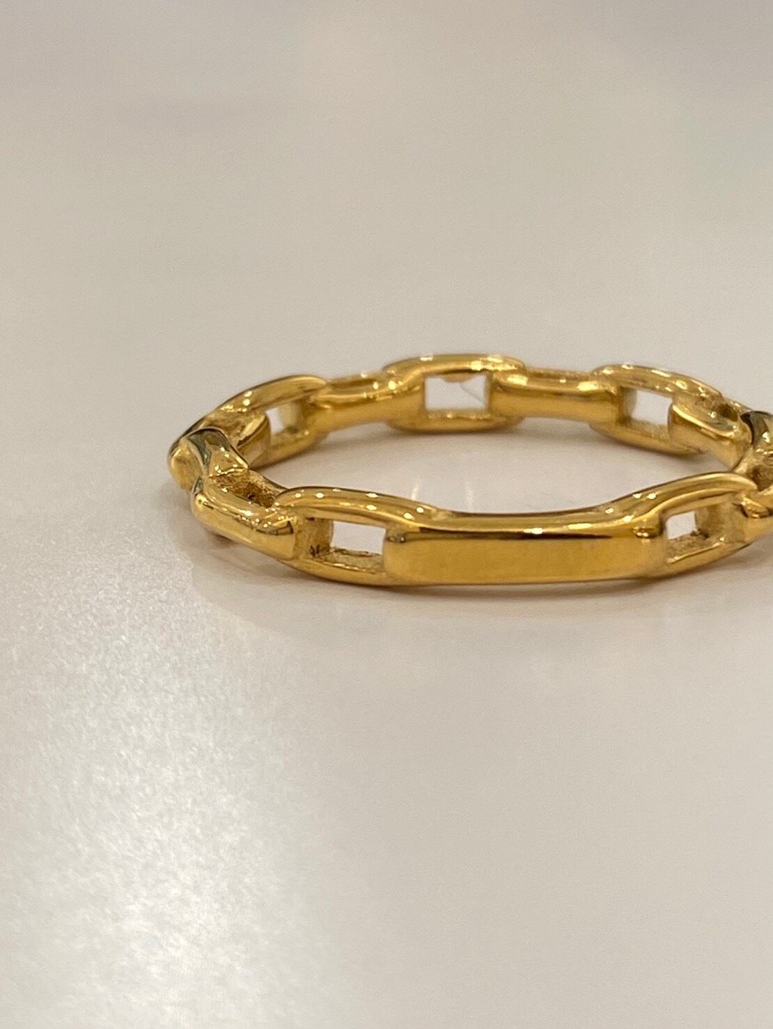 チェーンのようなデザインがお洒落なリング。太さも程よく、上品で大人っぽい印象に。重ね付けで付けても可愛いです。