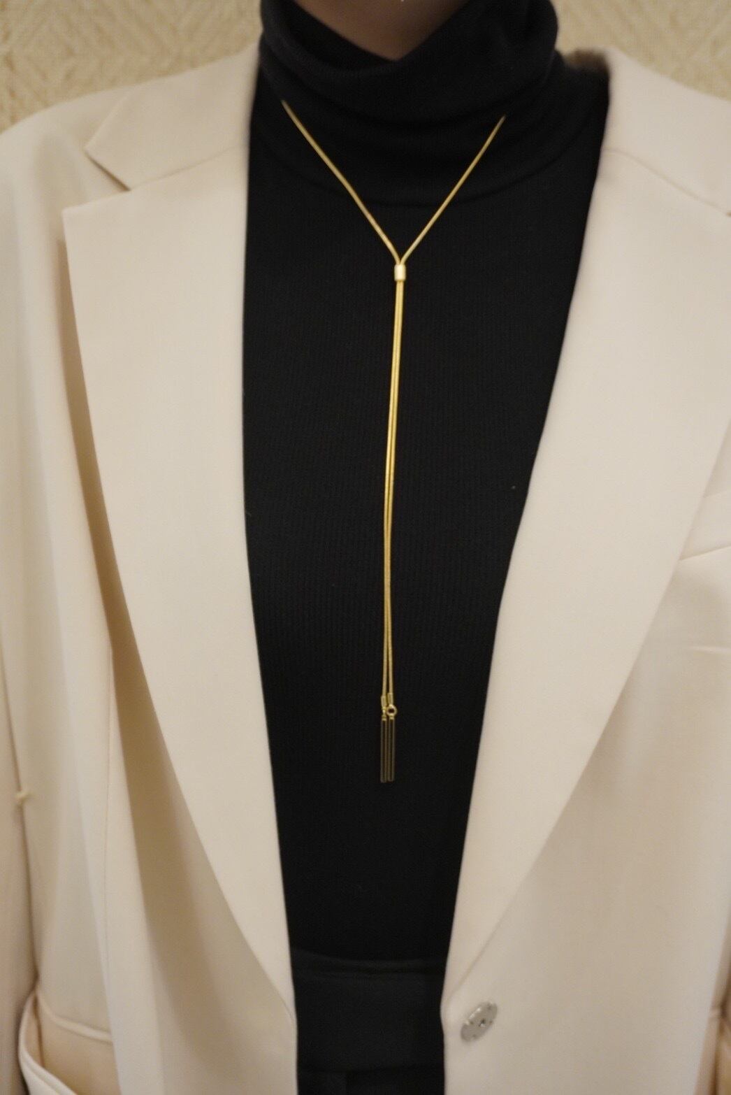 華奢なラインが大人っぽくデコルテを綺麗に見せてくれます。スライド式なので、お好みの長さを楽しめるのも嬉しい◎