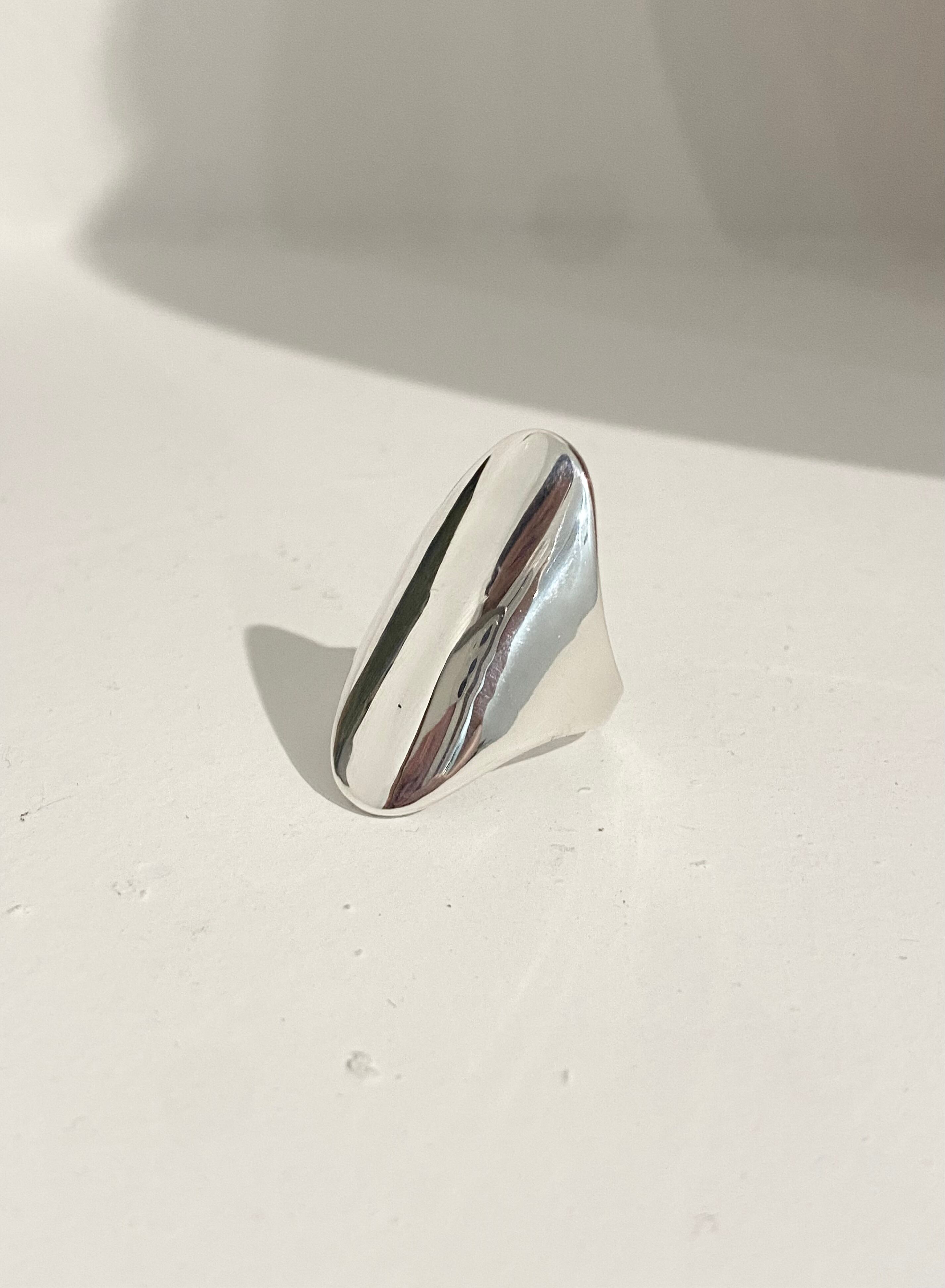 カジュアルながらもエレガントなムードが漂います。程よいボリュームのリングは手元にアクセントを加えます。