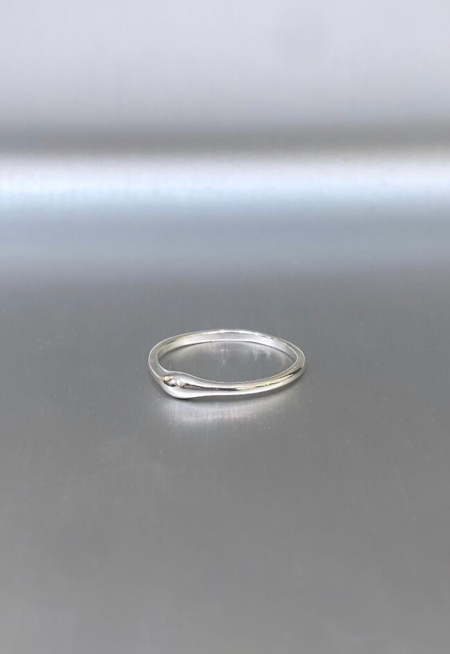 シンプルながらも上部のぷっくりがアクセントになるリング。程よい細さで、お手持ちのリングと組み合わせても可愛いです。