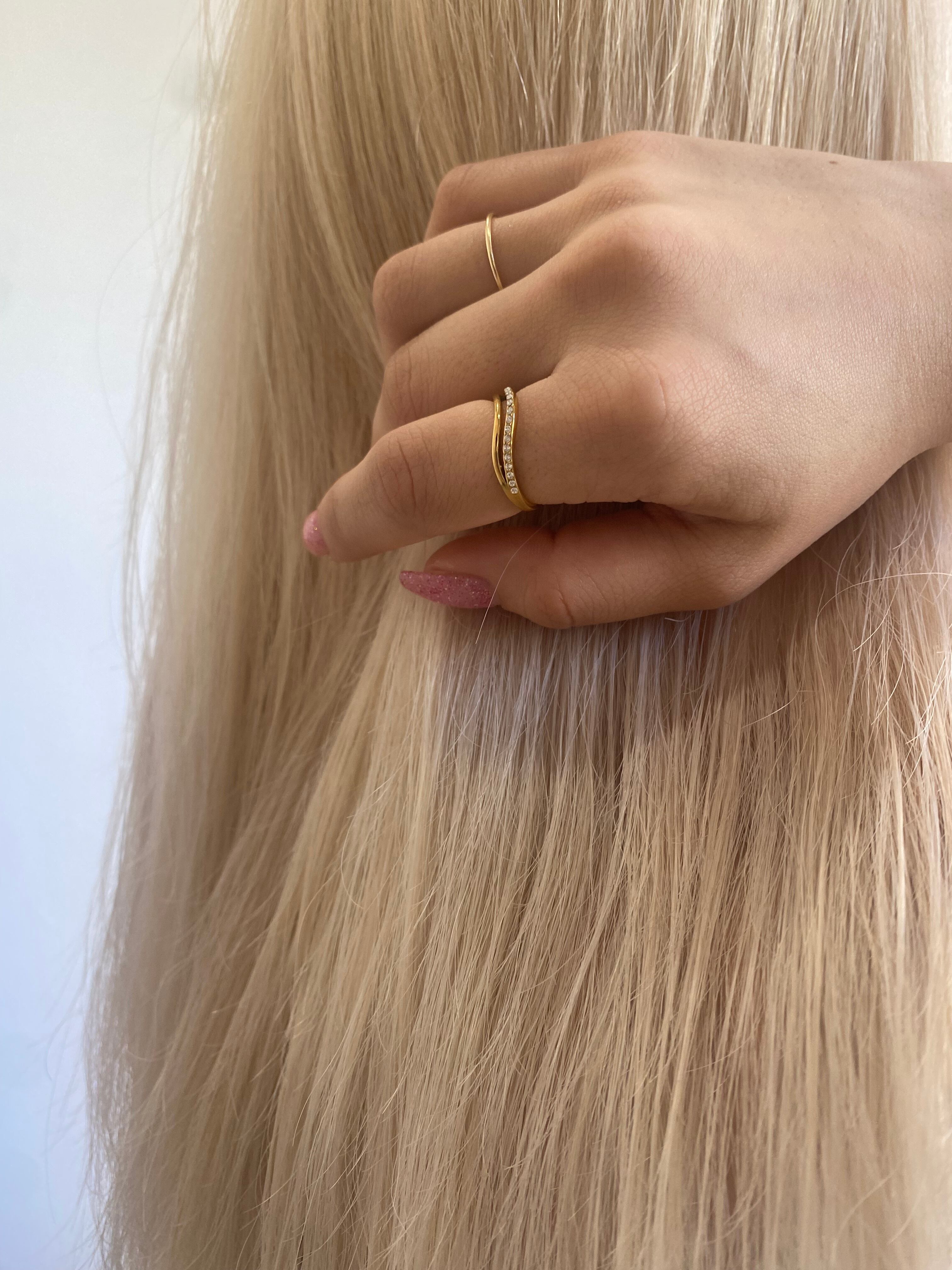 シンプルでスタイリッシュなデザインが魅力のリング。華やかなCZストーンがワンポイントとして輝き、手元を美しく演出します。