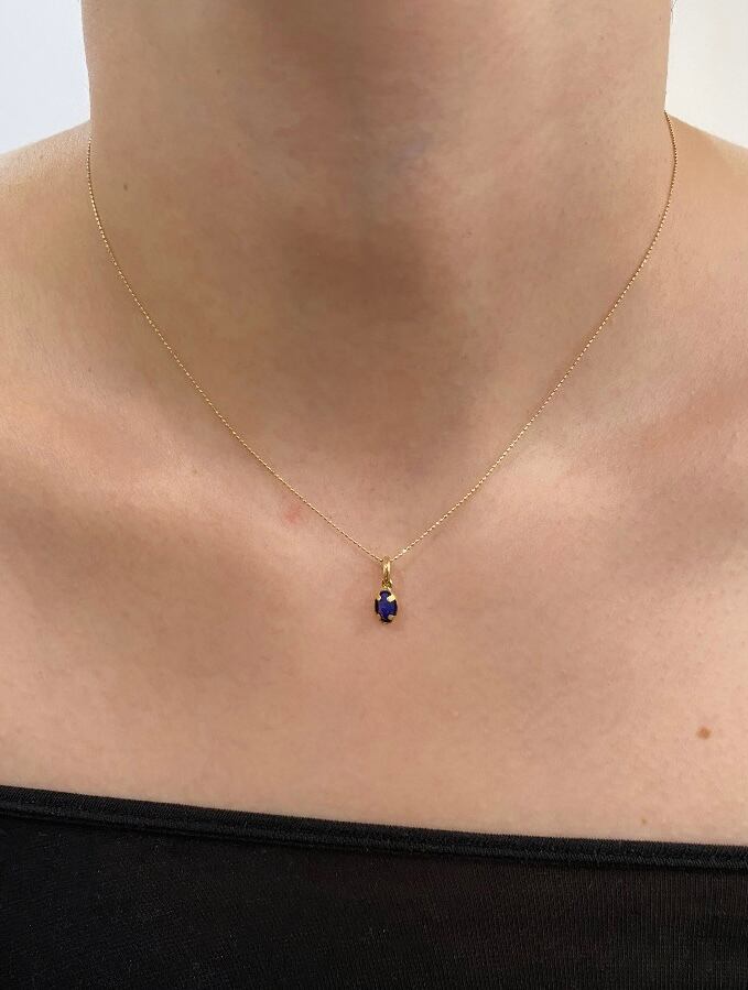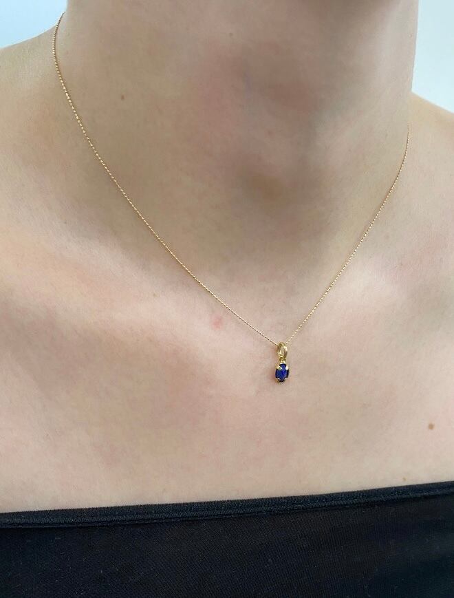 深い青色が特徴のラピスラズリのチャームです。シンプルながらも、その豊かな色合いがあなたのスタイルを一層引き立てます。