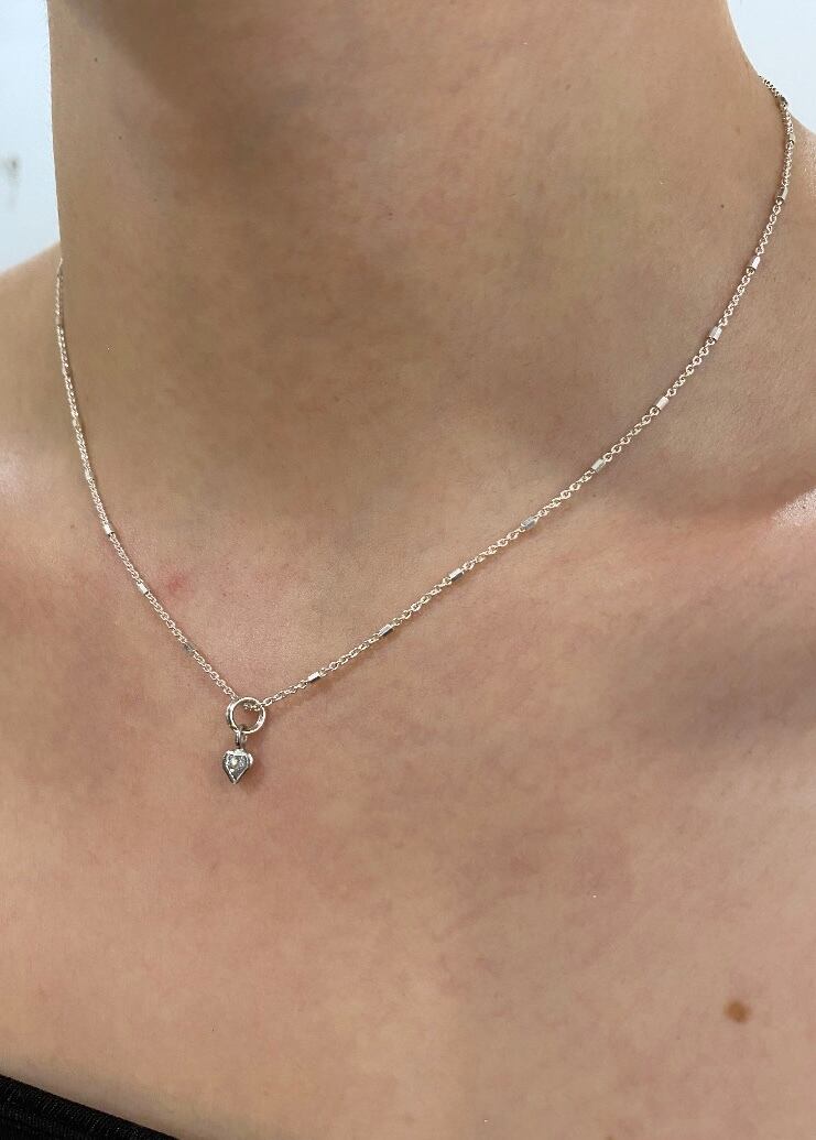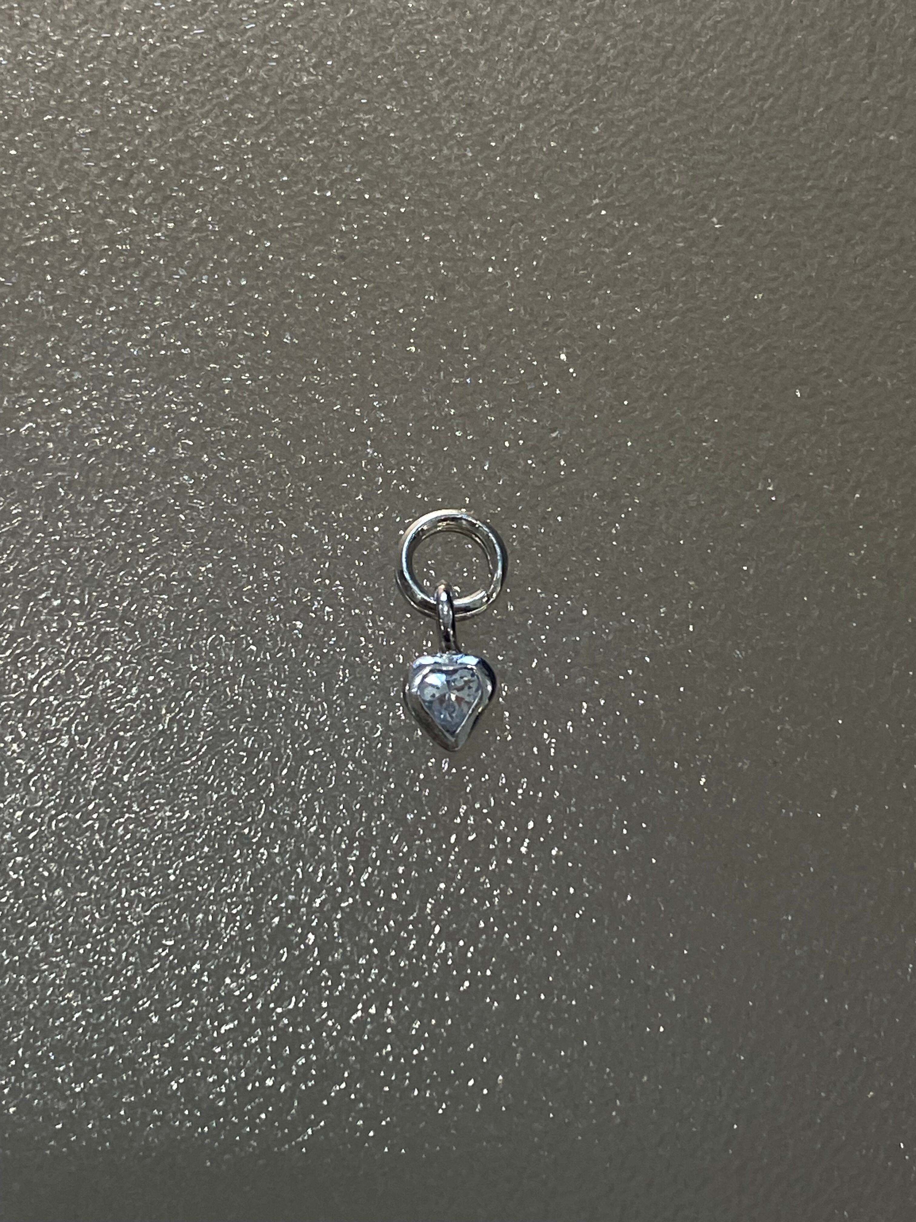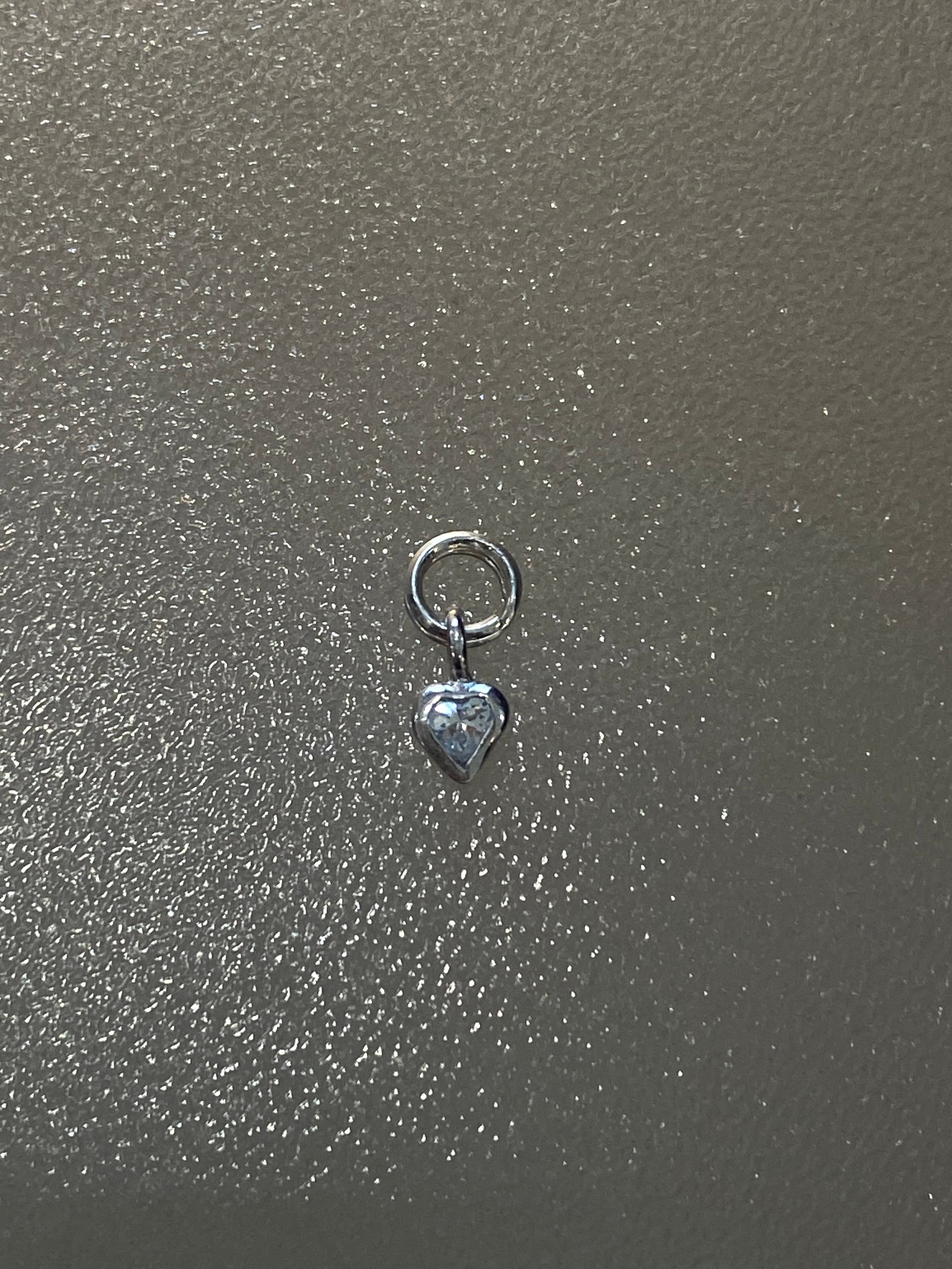小さななハートモチーフと輝くジルコニアが特徴のチャームです。シンプルでありながら、そのキュートなデザインがあなたのスタイルを一層引き立てます。